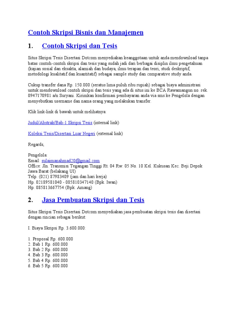 Contoh skripsi tesis disertasi dotcom… contoh skripsi tesis disertasi dotcom spesialis menyediakan kumpulan, koleksi, daftar contoh ribuan skripsi, tesis dan disertasi yang sudah jadi dari berbagai disiplin ilmu pengetahuan berikut kebutuhan terkait pembuatan tugas akhir kesarjanaan mahasiwa program s1, s2, dan s3. Contoh penerapan manajemen bisnis yang baik. Telah dinyatakan lulus ujian skripsi pada tanggal 20 desember 2010 tim penguji :