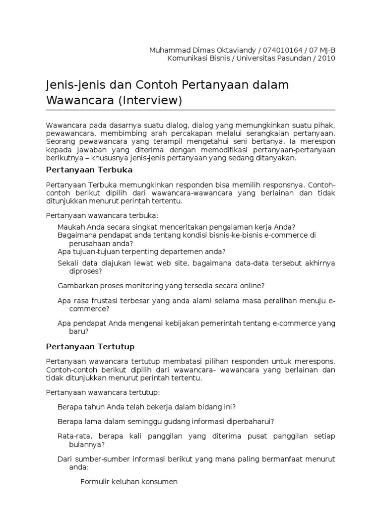 KOMUNIKASI BISNIS TEKNIK WAWANCARA