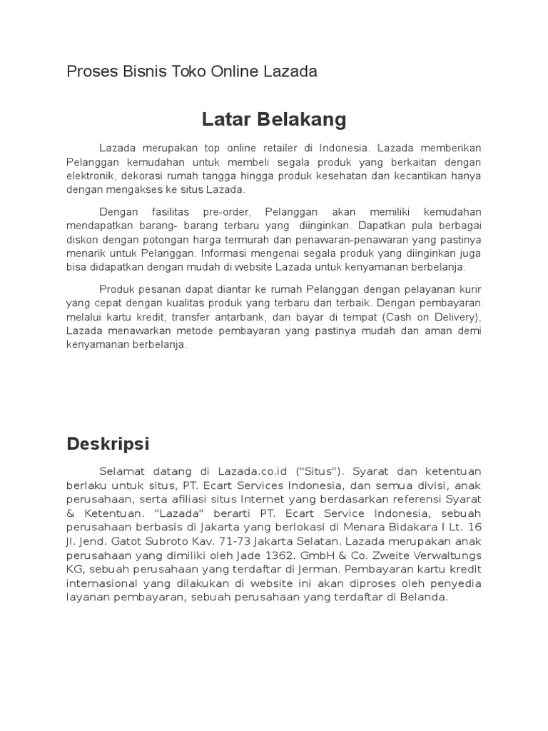 Analisis Proses Ebisnis di Lazada Selamat Datang Di